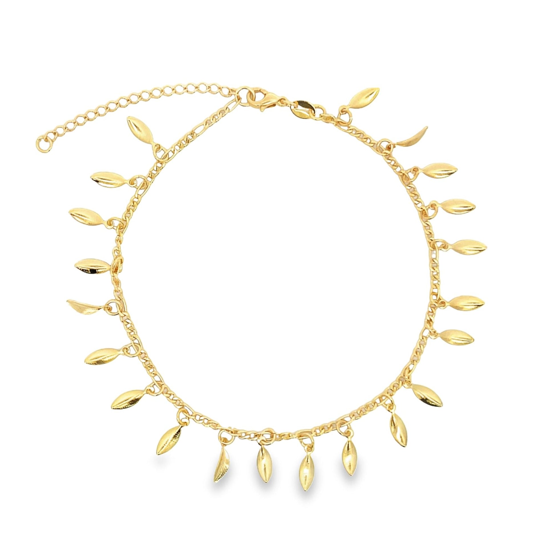 Dangle Tiny Leaf Charm Anklet (E222)