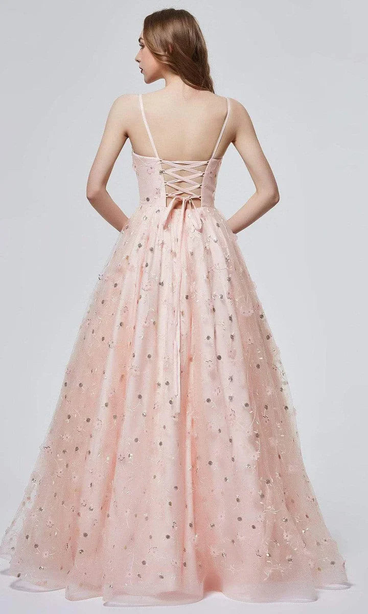 Indulge in luxury with our J19006 prom dress, fit for a princess. The corset bodice with spaghetti straps and v-neck adds a touch of sophistication, while the blush pink ball gown skirt exudes elegance. Make a statement at your next event with this one-of-a-kind piece.